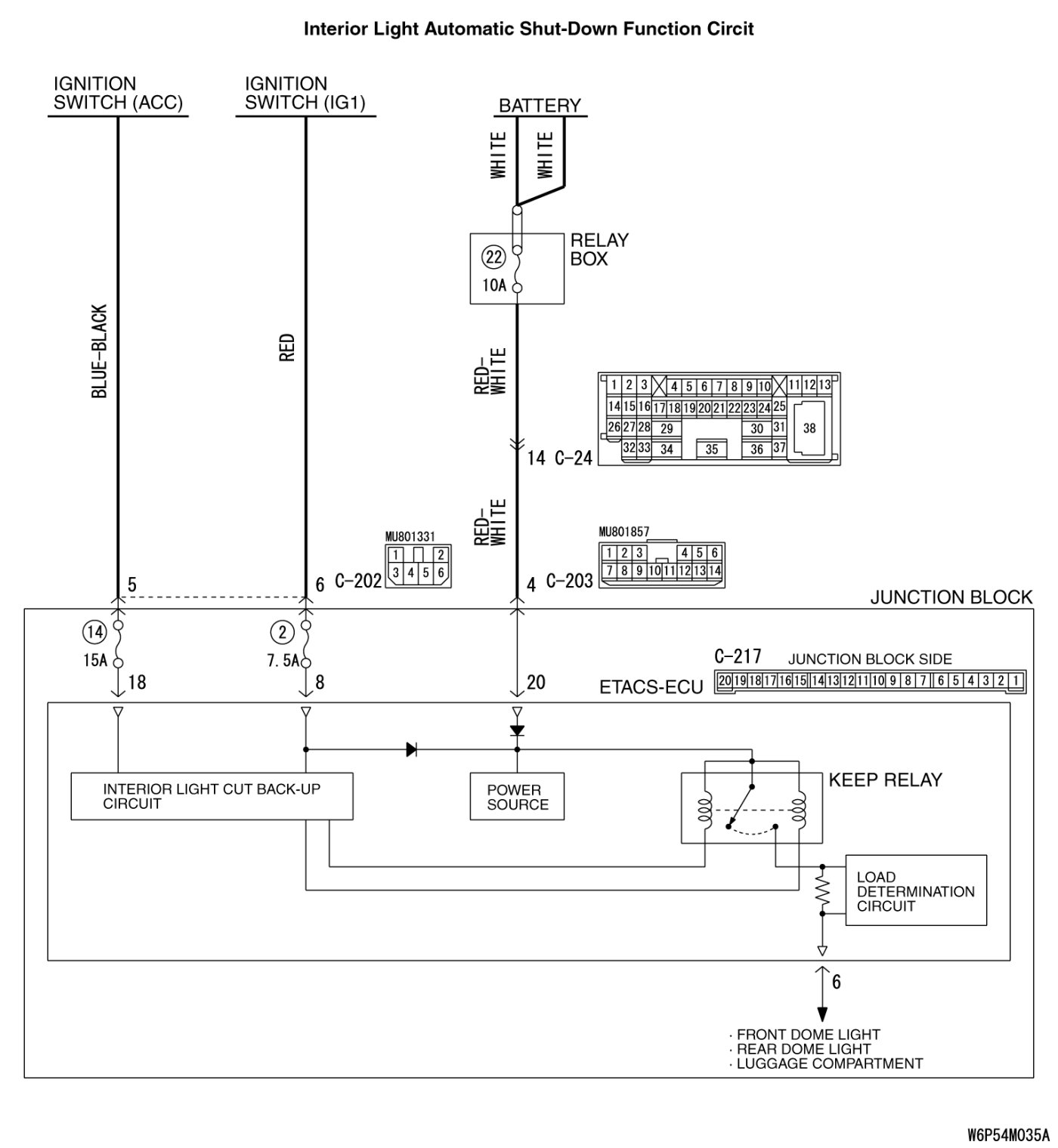 YES Replace the ETACS-ECU. When the ETACS-ECU is replaced, register the encrypted code. Immobilizer System. If the functions or equipment described in "CIRCUIT OPERATION" work normally, the interior light loaded signal should be normal.