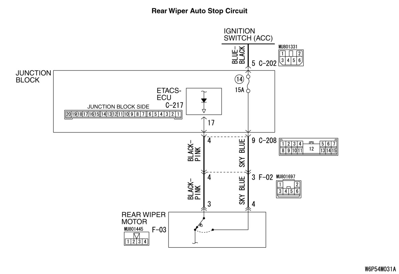 The ETACS-ECU makes the rear wiper stop at the predetermined park position according to the auto-stop signal from the rear wiper motor.