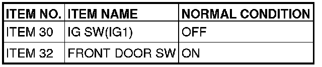 Normal condition is not displayed for "FRONT DOOR SW" : Refer to Inspection Procedure M-5 "ETACS-ECU does not receive any signal from the door switches Inspection Procedure M-5."