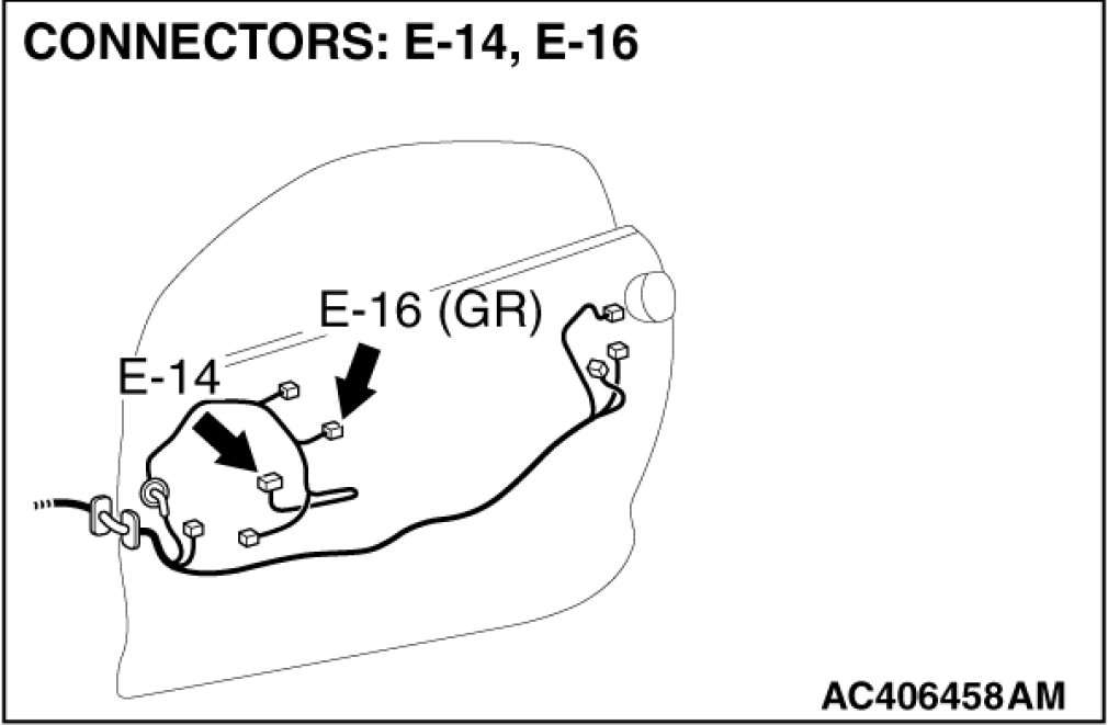 STEP 8. Check the wiring harness between power window main switch connector E-14 (terminal 7) and power window motor (LH) connector E-16 (terminal 6).