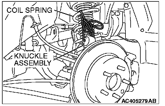 Secure the knuckle assembly by a cord as shown to avoid load on the brake hose.