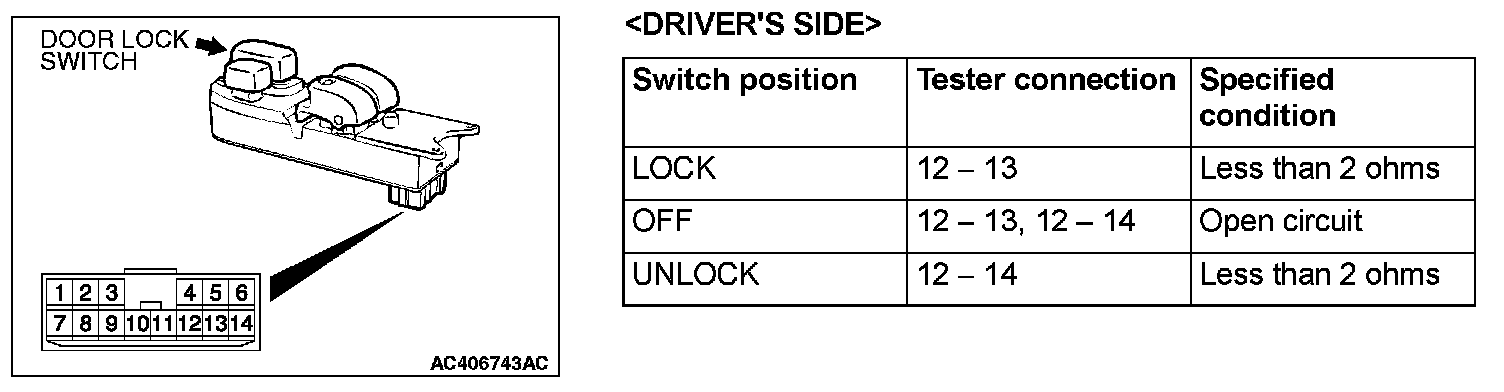 Power Door Lock Switch: Testing and Inspection
