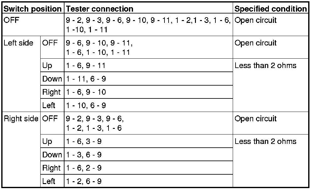 DOOR MIRROR CONTROL SWITCH CONTINUITY CHECK