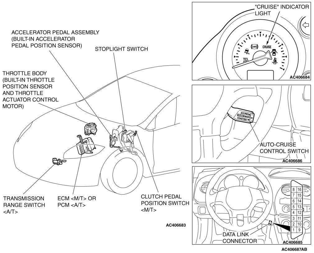 By using the auto-cruise control system, the driver can select and maintain a desired cruising speed [between 40 km/h (25 mph) and 200 km/h (124 mph)]
