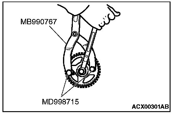 1. Use special tools MD998715 and MB990767 in the same way as during removal to install the camshaft sprocket.