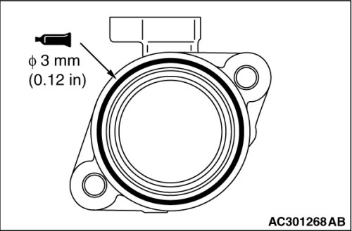2. Apply sealant to the camshaft position sensor support flange in a continuous bead as shown in the illustration.