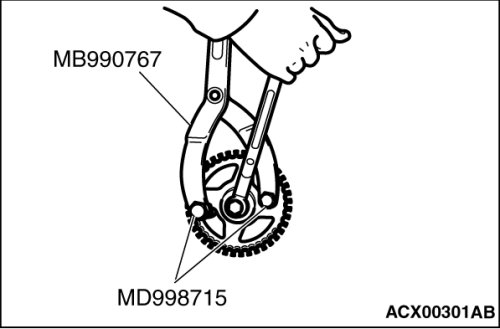 1. Use special tools MD998715 and MB990767 in the same way as during removal to install the camshaft sprocket.