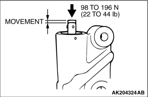 4. Press the rod with a force of 98 to 196 N (22 to 44 pounds) and measure the movement of the rod.
