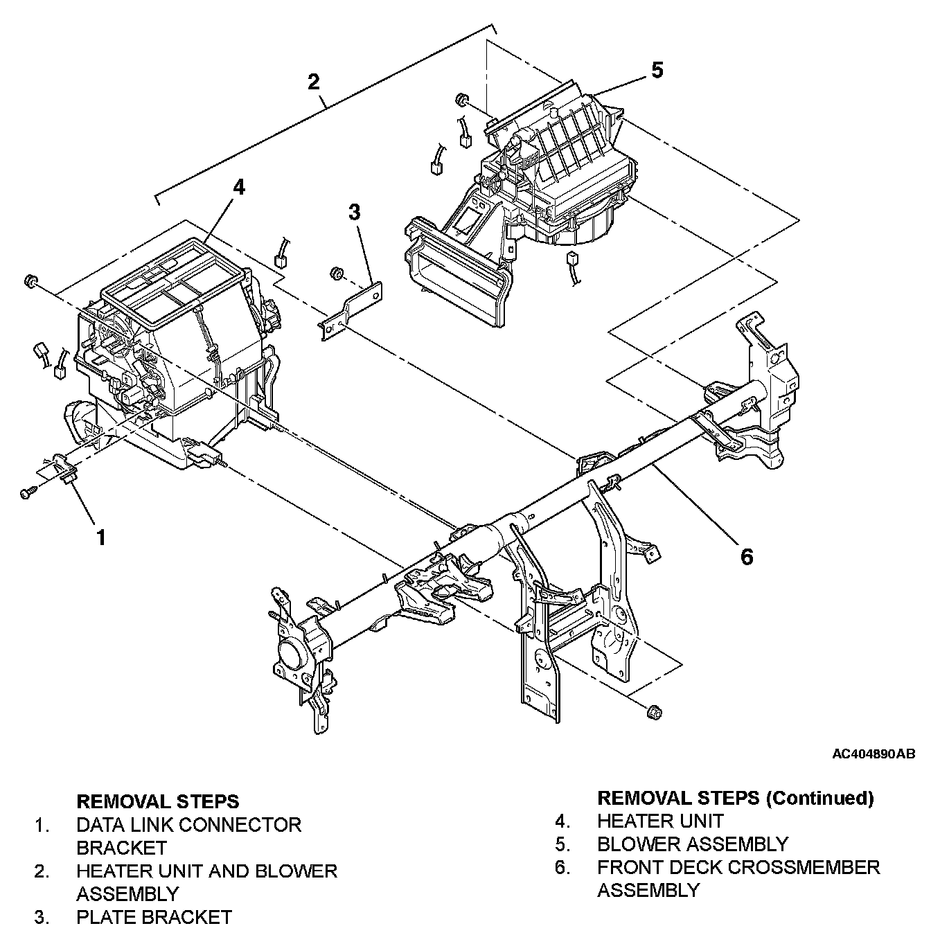 HEATER UNIT AND BLOWER ASSEMBLY REMOVAL AND INSTALLATION