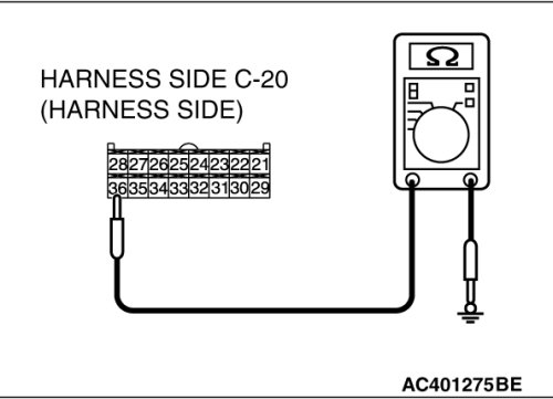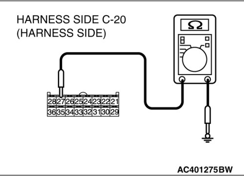 STEP 8. Check the wiring harness between A/C-ECU connector C-20 (terminal 27) and ground.
