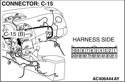 STEP 5. Check A/C-ECU C-15 and C-20 for loose, corroded or damaged terminals, or terminals pushed back in the connector.