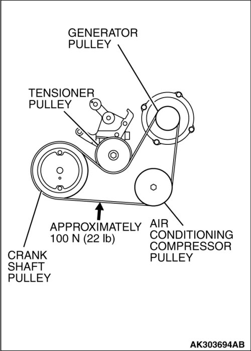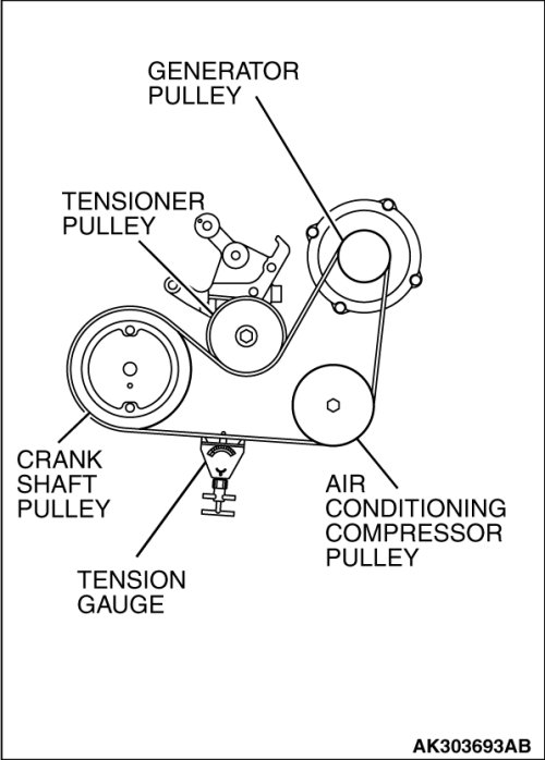 - Check the drive belt tension after turning the crankshaft clockwise one turn or more.