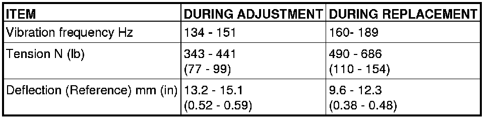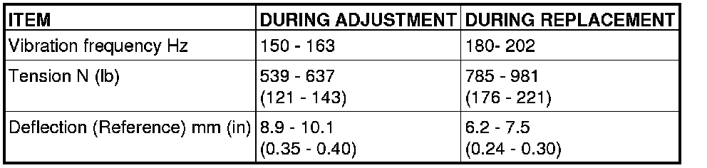 If the vibration frequency, tension or deflection is outside the standard value, adjust by the following procedure.