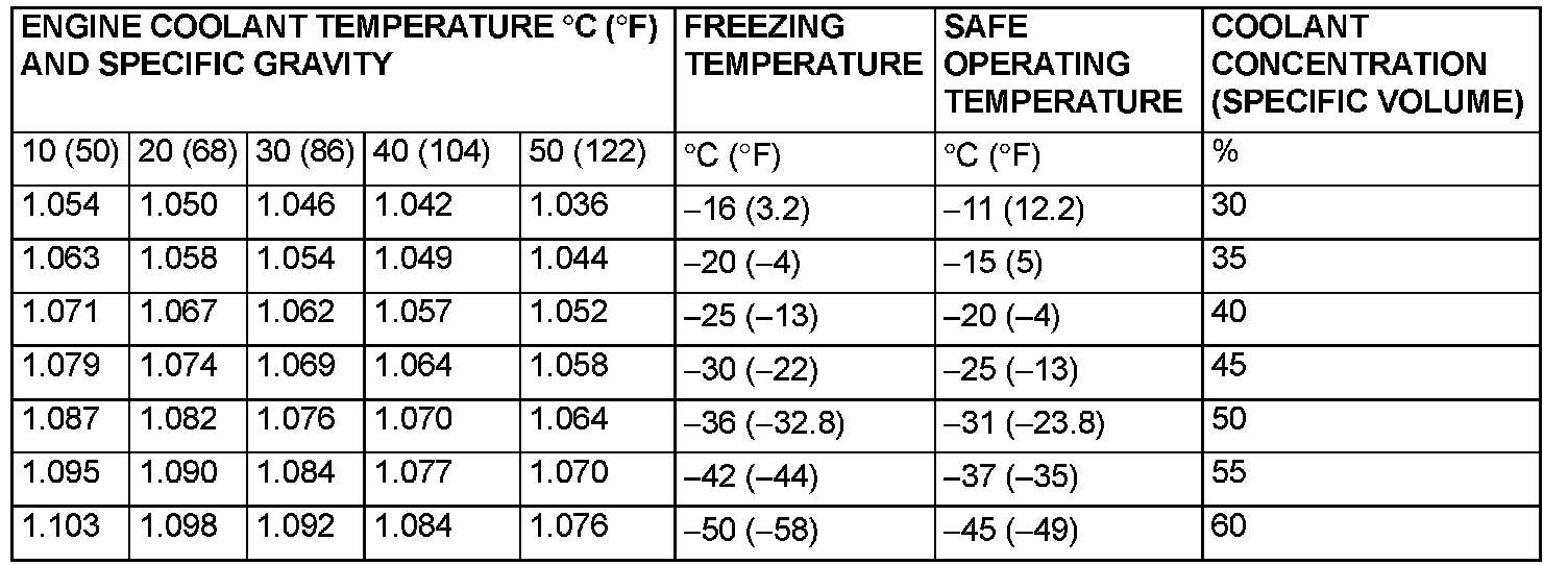 Relationship between Coolant Concentration and Specific Gravity