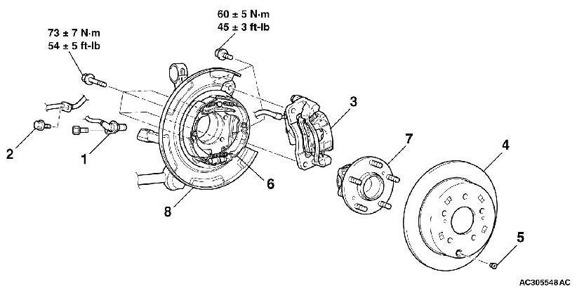2. Secure the removed brake caliper assembly with a wire or other similar material at a position where it will not interfere with the removal and installation of the rear hub assembly.