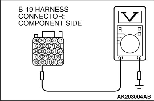 (1)Disconnect the connector B-19 and measure at the harness side.