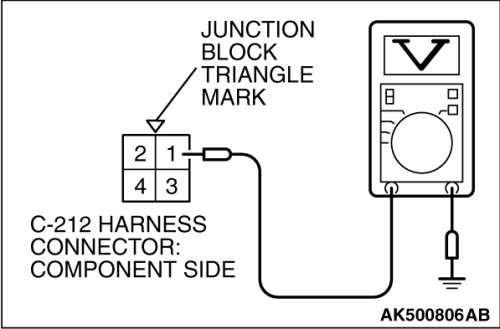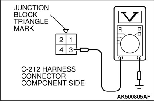 STEP 7. Measure the power supply voltage at fuel pump relay 2 harness side connector C-212.