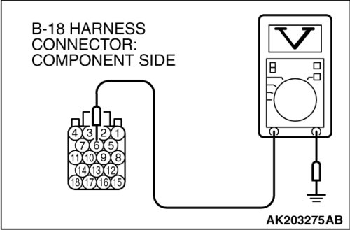 (1)Disconnect the connector B-18 and measure at the harness side.