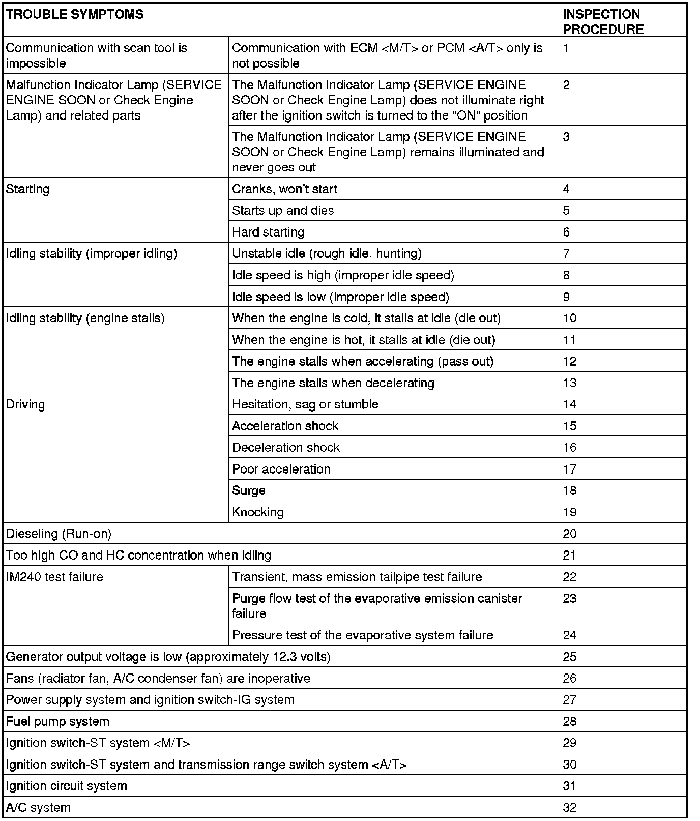 Check that the ECM [M/T] or the PCM [A/T] ground circuit is normal before checking for the cause of the problem.