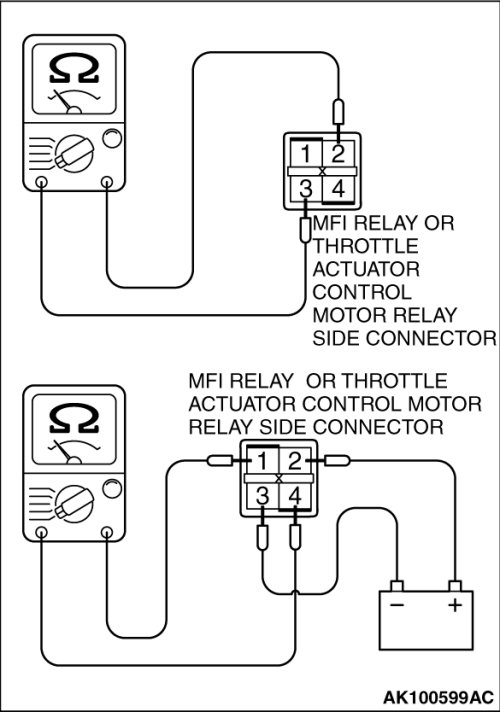 MULTIPORT FUEL INJECTION (MFI) RELAY AND THROTTLE ACTUATOR CONTROL MOTOR RELAY CONTINUITY CHECK