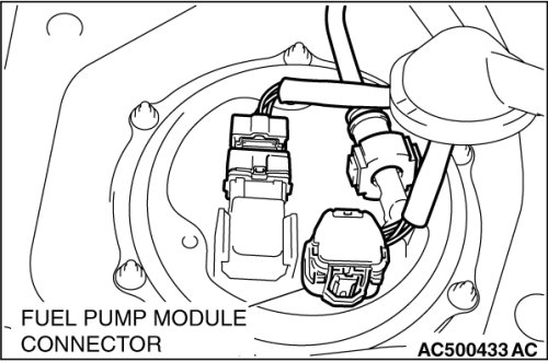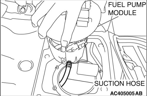 - When removing the fuel pump module from the fuel tank, be careful not to spill the fuel remaining in the fuel pump module.