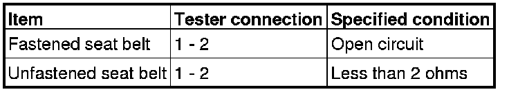 SEAT BELT SWITCH CONTINUITY CHECK (DRIVER'S SIDE)