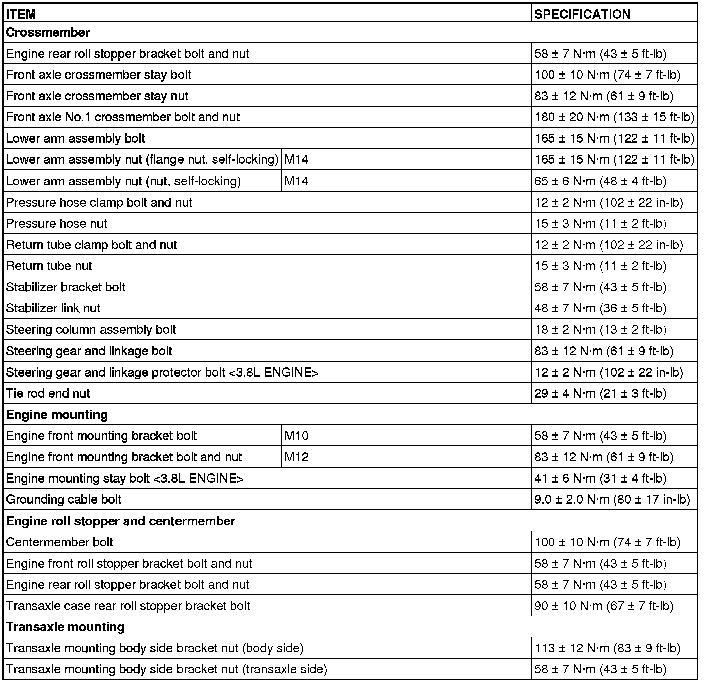 FASTENER TIGHTENING SPECIFICATIONS
