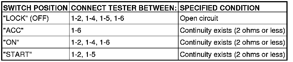 connector C-308 without removing the ignition switch and steering lock cylinder. Then check the continuity.