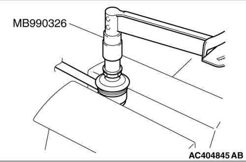 1. After shaking the ball joint stud several times, install the nut to the stud and use special tool MB990326 to measure the breakaway torque of the ball joint.