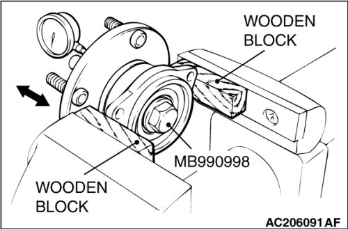 4. Measure the wheel bearing rotation starting torque by using the special tools MB990326 and MB990685.