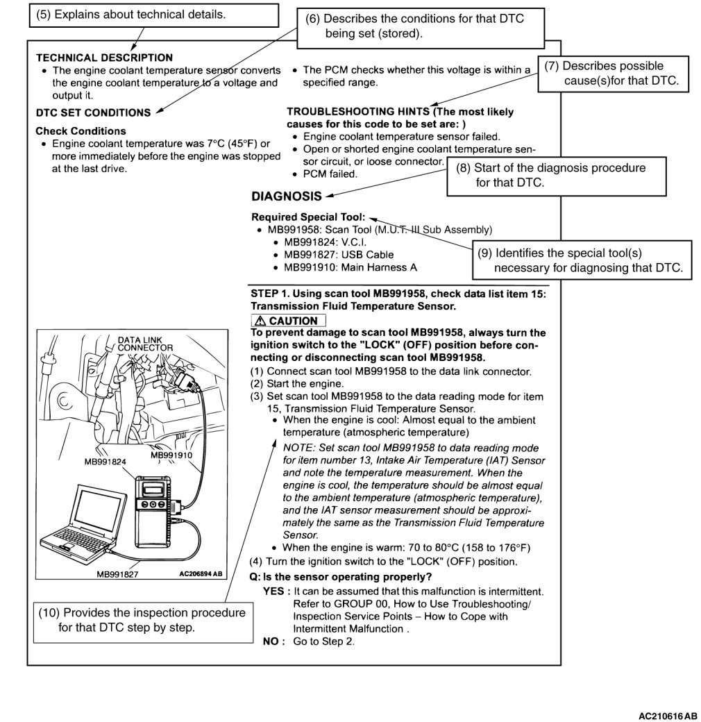 Indicates that the trouble is historic, but normal operation has been restored. Observe the applicable inspection procedure with particular emphasis on connector(s) and wiring harness.