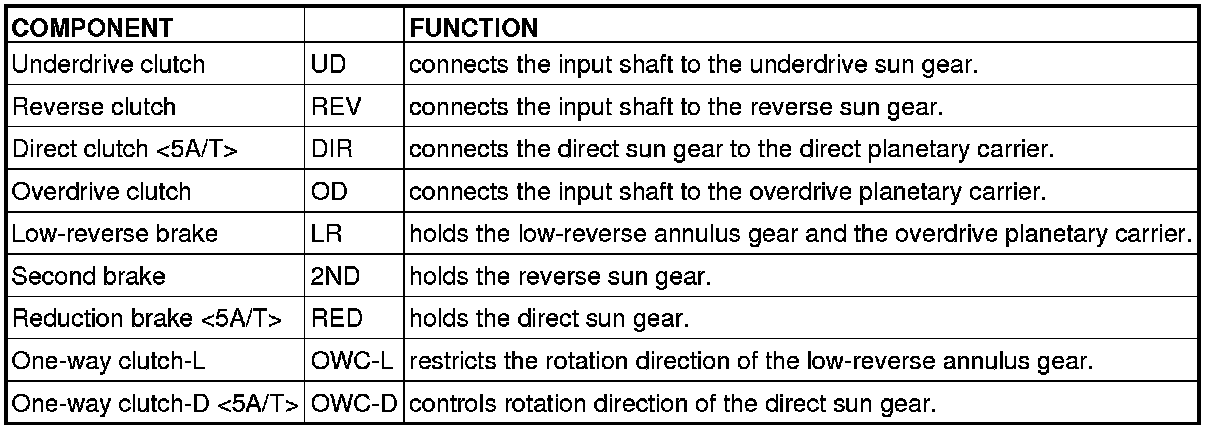 FUNCTION ELEMENT TABLE[5A/T]