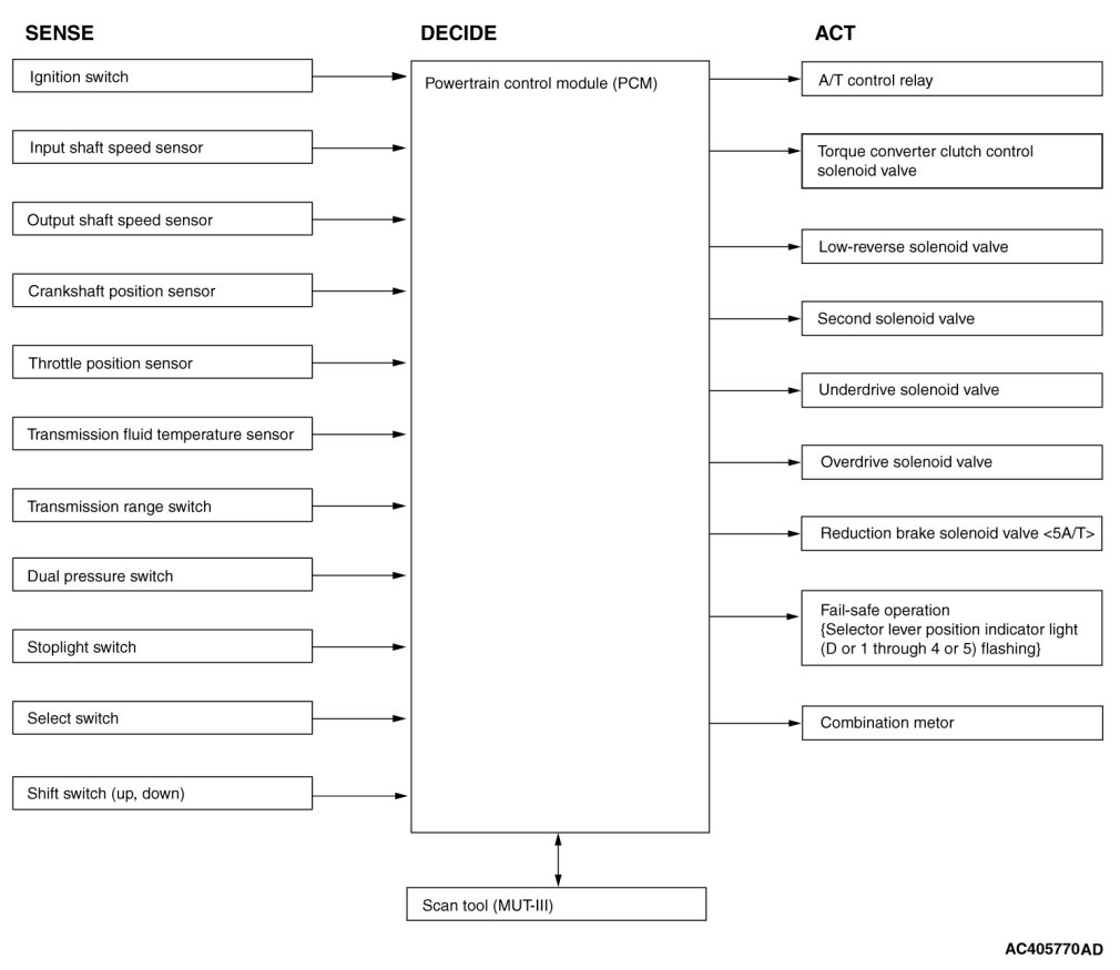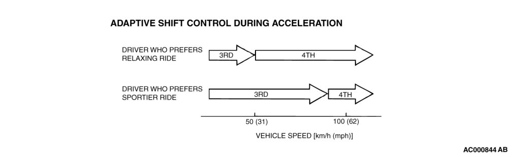 Within 2 -to- 3 and 3 -to- 4 movement ranges, the PCM adjusts shift points according to the driving conditions by memorizing the accelerator pedal stroke and braking timing.
