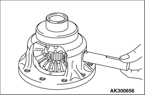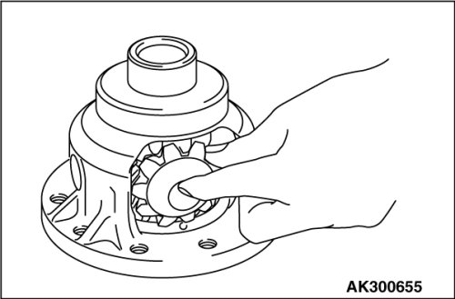 1. Mount a spacer on the back surface of the side gear, and then install the side gear in the differential case.