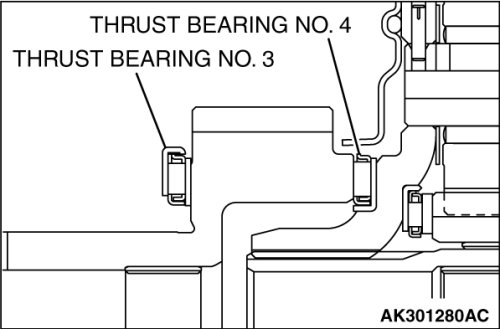 Check the installation direction of thrust bearings number 3 and 4, and install them as shown.
