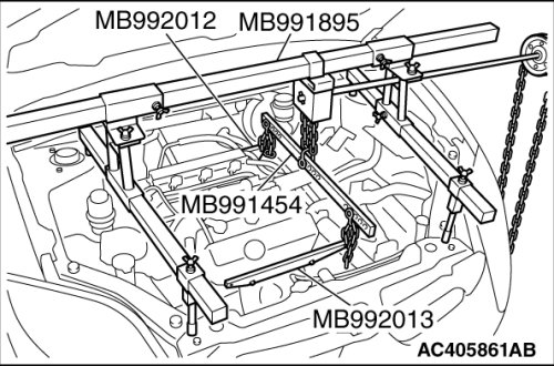 3. [Engine hanger MB991895 is used]