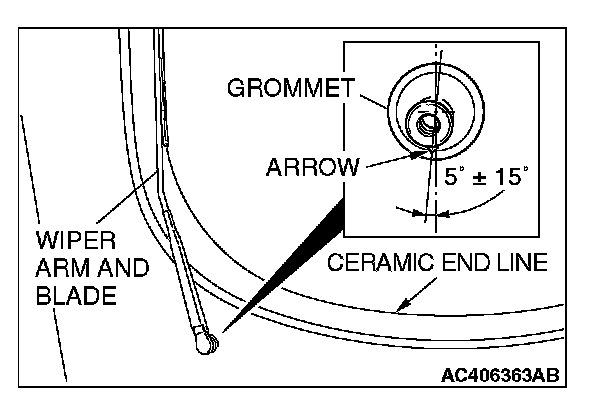 Install the wiper arm and blade assembly so that it is positioned on the ceramic end line.