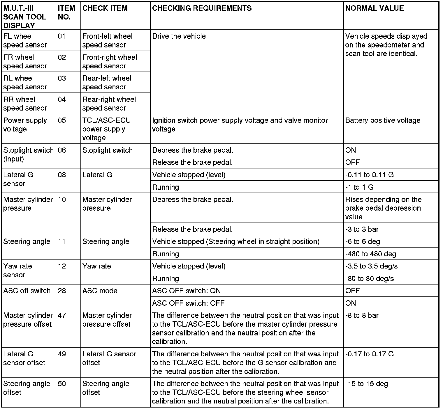 The following items can be read by the scan tool from the TCL/ASC-ECU input data.