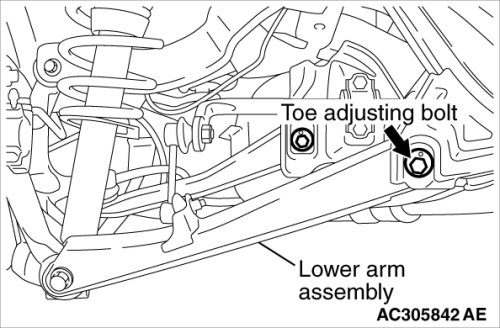 - When adjusting the camber, tighten the lower arm assembly and the trailing arm assembly, not the toe control arm.