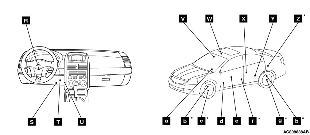 The * symbols indicate equipped at both sides.
