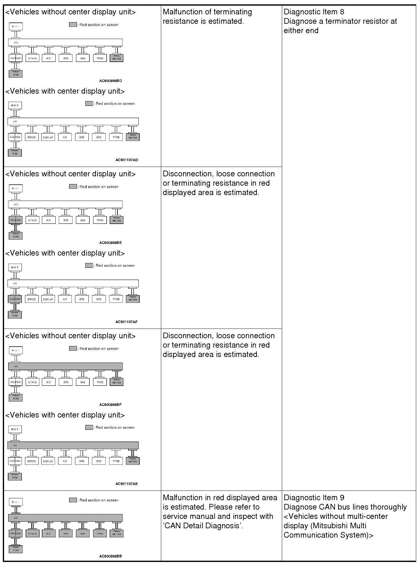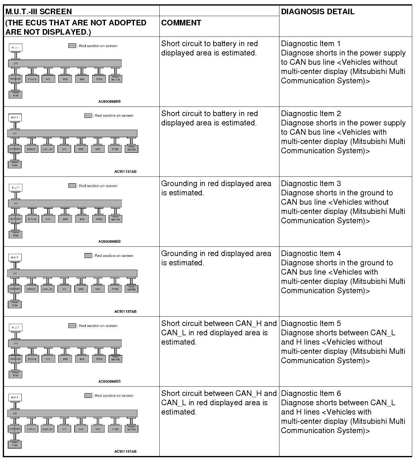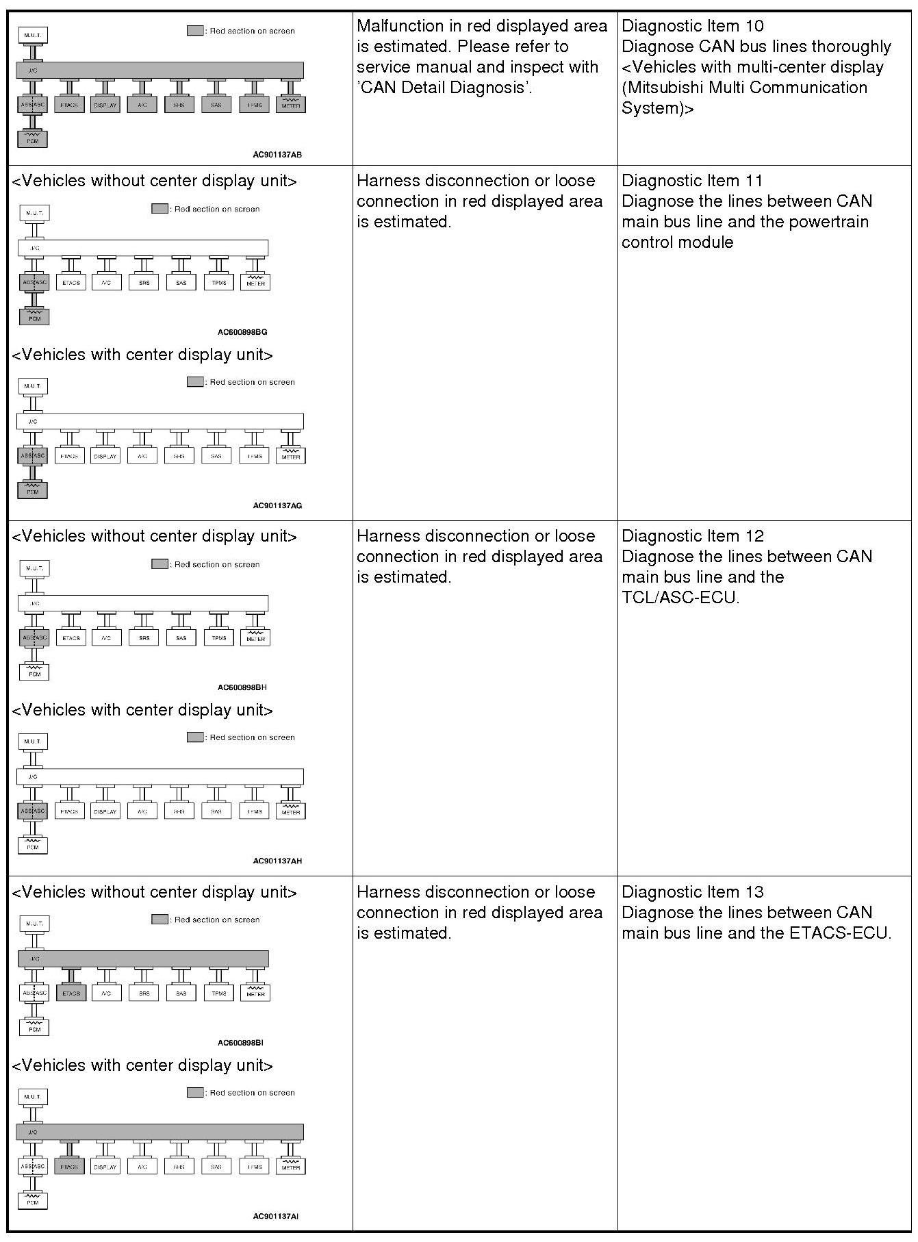 CAN BUS DIAGNOSTICS TABLE