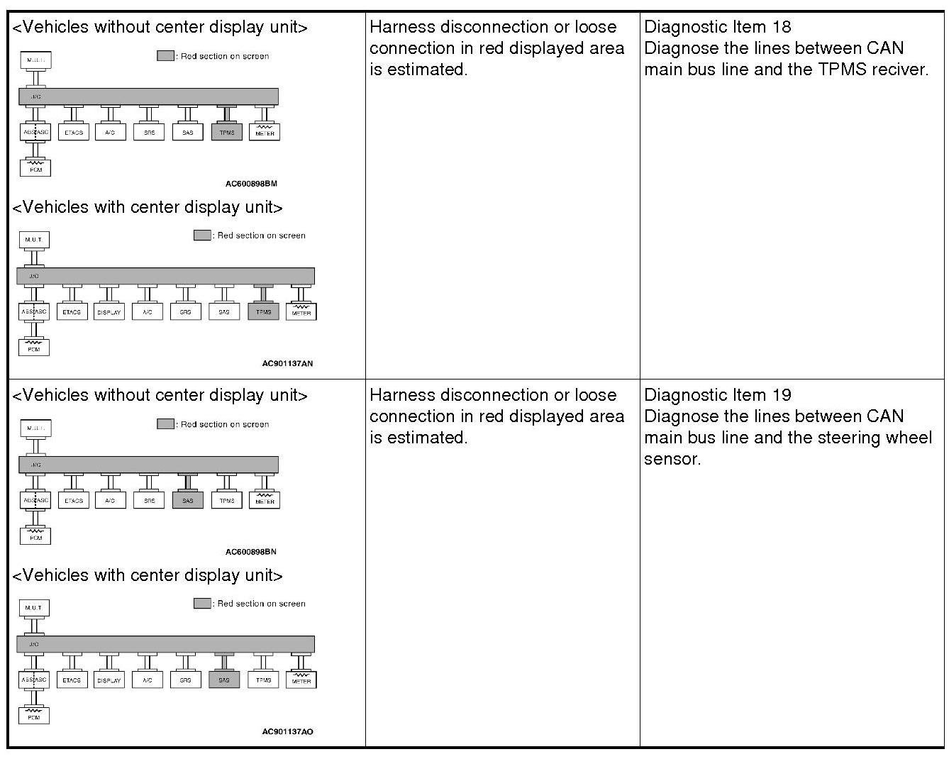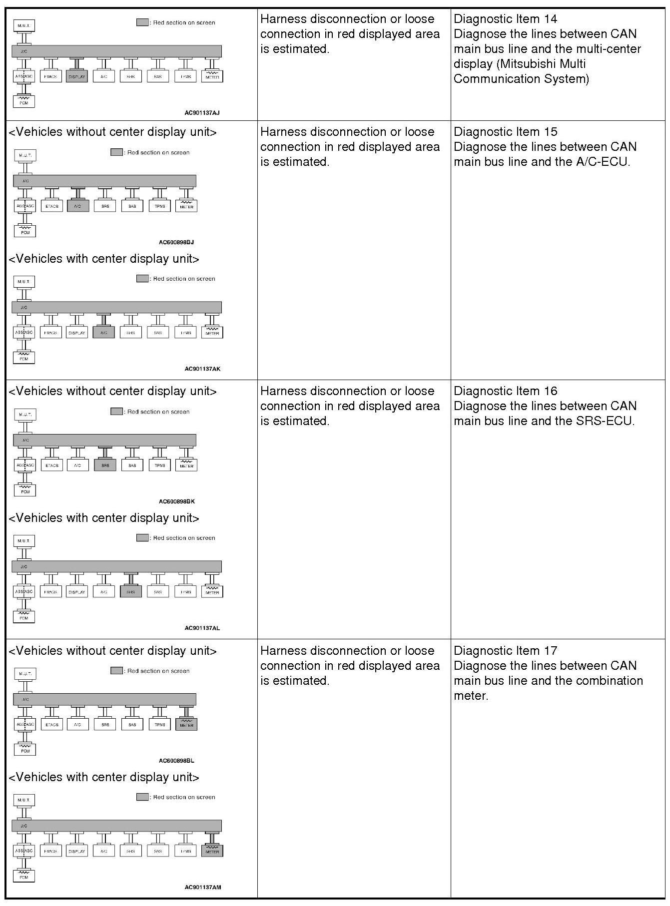 If a trouble cannot be solved after performing the diagnosis other than item 15, diagnose CAN bus line thoroughly.