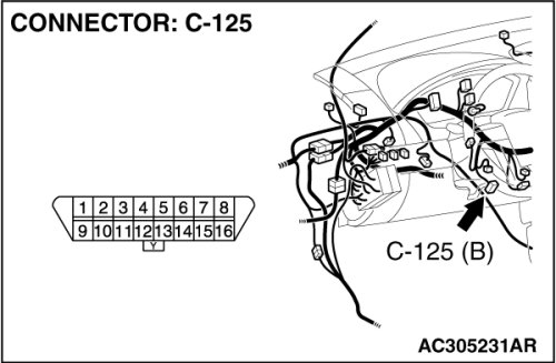 STEP 1. Check data link connector C-125 for loose, corroded or damaged terminals, or terminals pushed back in the connector.