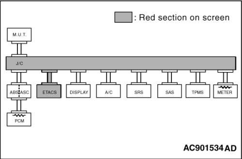 STEP 9. Using scan tool MB991958, diagnose the CAN bus line (Disconnect ETACS-ECU connector C-218, and check the ETACS-ECU system).