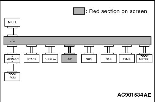 STEP 12. Using scan tool MB991958, diagnose the CAN bus line (Disconnect A/C-ECU connector C-15, and check the A/C-ECU system).