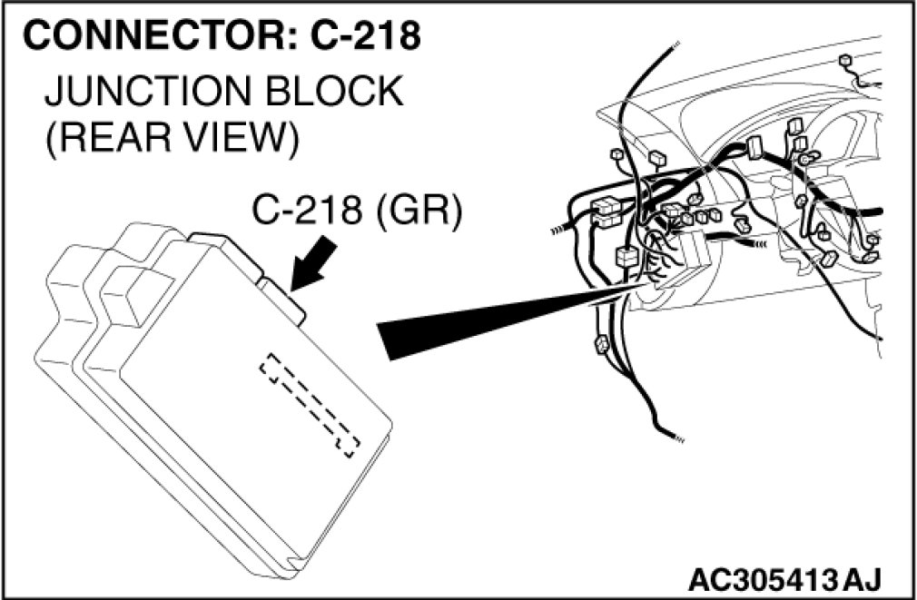(1)Disconnect joint connector (3) C-02 and ETACS-ECU connector C-218, and measure the resistances at the wiring harness sides of joint connector (3) C-02 and ETACS-ECU connector C-218.