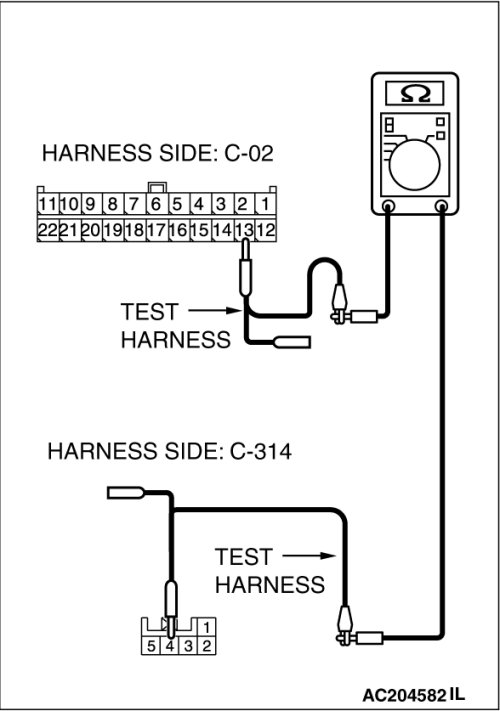 STEP 1. Check joint connector (3) C-02 and steering wheel sensor connector C-314 for loose, corroded or damaged terminals, or terminals pushed back in the connector.
