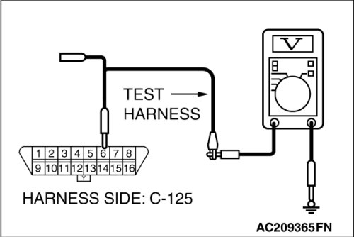 (1)Disconnect powertrain control module connector B-19 and combination meter connector C-101, and measure the voltage at the harness side of data link connector C-125.