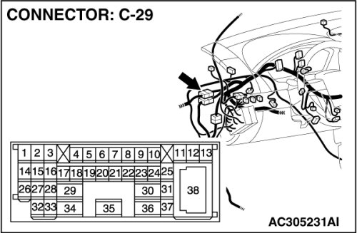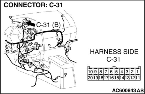 STEP 25. Check multi-center display unit (Mitsubishi Multi Communication System) connector C-31 [Mitsubishi Multi Communication System] for loose, corroded or damaged terminals, or terminals pushed back in the connector.