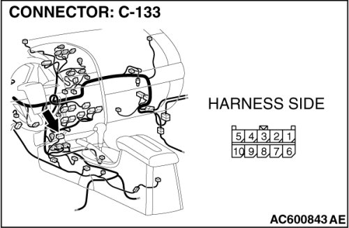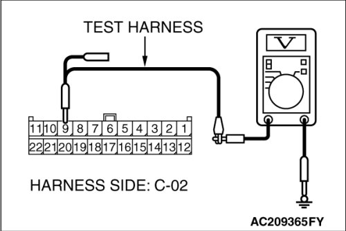 NO If the voltage measures more than 1.0 V, repair the wiring harness between joint connector (3) and the multi-center display unit connector (Mitsubishi Multi Communication System).
